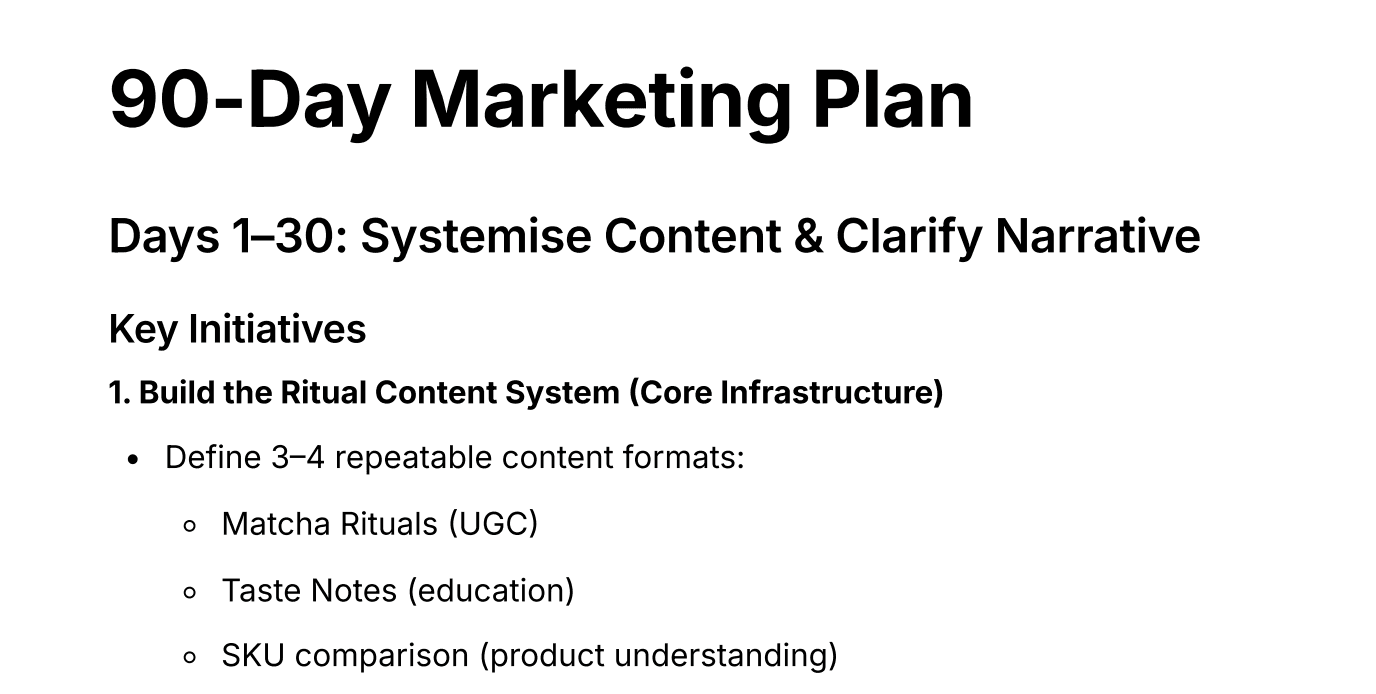 To grow a small brand, my priority is to reduce founder dependency with a repeatable content system that builds authority. This brand differentiates itself through a distinct, design-led voice that prioritizes "matcha as culture" over generic health claims, maintaining a focused premium positioning. My approach avoids short-term, sales-driven tactics that dilute equity, instead using a deep understanding of the founder’s intent and a hyper-customized strategy to ensure the brand achieves domain reputation and consumer loyalty before scaling.